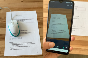 – L’application scanner à télécharger sur votre smartphone ou sur votre tablette (gratuit) : allez dans votre application, faites comme si vous preniez une photo, retaillez l’image, améliorez la qualité et choisissez le format de votre document (image ou PDF) puis envoyez le document par mail ! Vous pouvez faire un seul PDF avec plusieurs pages d’un document que vous avez scanné…moins idéal pour les enfants en classe mais très pratique pour les parents